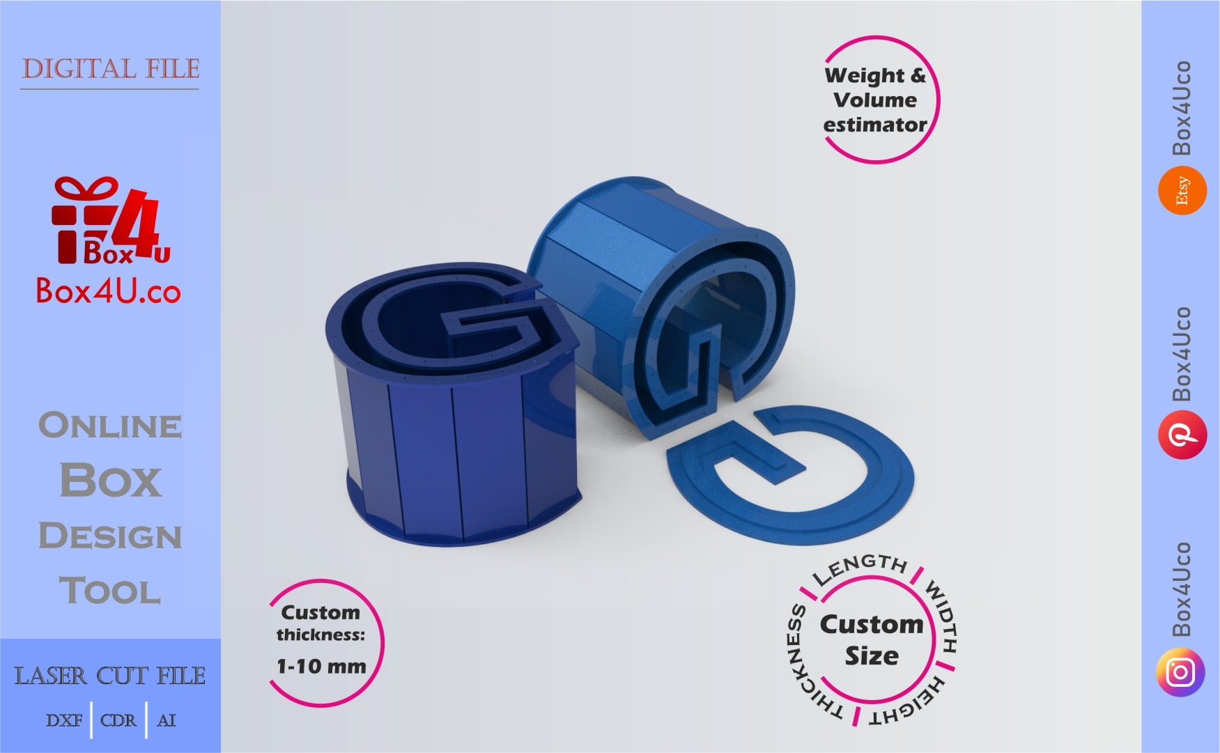 If you want to make a Letter G box quickly and easily, you’re in the right place. With our web application, you can use an interactive online design tool. This allows you to see your box in a 3D view, adjust its dimensions, and visualize your customizations instantly. You can create a unique box cut file that is perfect for laser cutting.