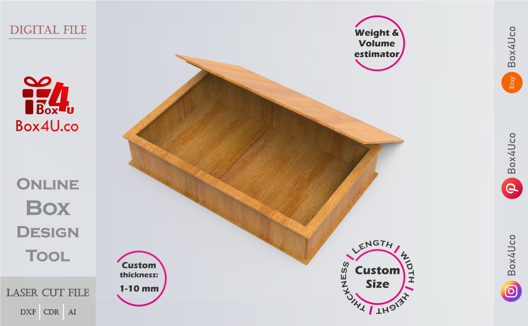 The process to create your rectangular box is simple and user-friendly. Start by selecting this box design, then customize the dimensions, including height and width, based on your specific requirements. The web app offers a 3D view of your design, allowing you to preview your box in real-time. Once you’re satisfied with the design, download the cut file in DXF format, which is compatible with most laser cutting machines. This ensures you can easily produce a high-quality box with precise cuts.